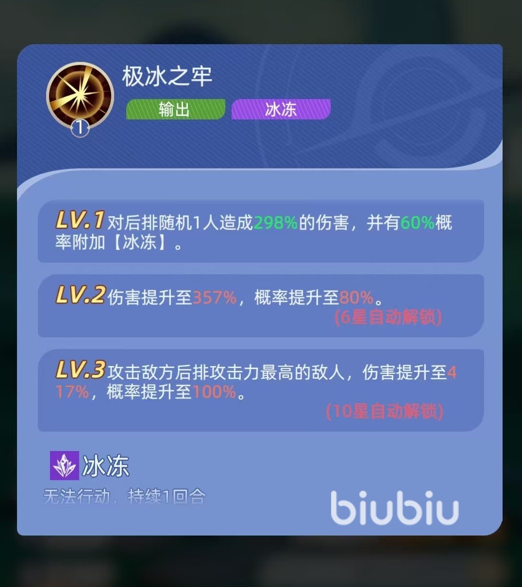 这款游戏现在九游可直接下载去玩,九游是手游福利性价比最高的平台,具有节假日活动万元无门槛免费抽的福利,在这里还可参与签到抽奖,玩游戏每天领工资。泰斯特拉号称是极寒掌控的,他在精灵阵营的搭配阵容中有着重要的作用。自身的第一个技能是属于输出和控制类型,随机选择一个后排敌人造成伤害,并有几率附加冰冻。提升技能等级后,可直接锁定后排攻击力最高的敌人,被冰冻之后一回合无法行动,这样就能直接控住对方后排的核心输出,效果非常出色。
