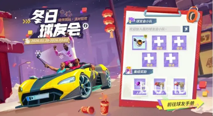 1.28,冬日球友会限时回归,邀请兄弟组成球友会小队,组队开黑快乐走起,当队内成员达到指定人数,还能解锁群星汇集券,潮人券奖励;1月28日到3月3日登录,通过对局完成个人每日任务,以及小队每周任务来提升“冬日球友手册”等级,就能解锁多种培养道具。