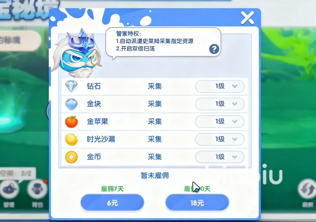 3、刷专属的活动,在游戏中给玩家设定了多个玩法内容,其中寻宝秘境是专门用来给玩家们获得时光沙漏的玩法。通过这个玩法能帮助玩家搜集沙漏道具,雇佣史莱姆的话能自动采集沙漏。