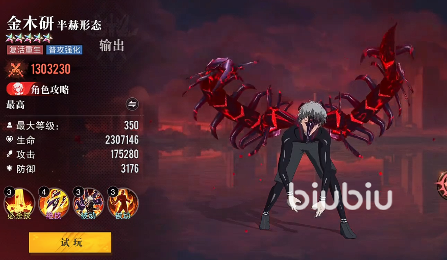 首先就是金木研,作为游戏中的主角,金木研的机制是比较万能的,他的被动可以通过造成伤害不断吸取对面的血量,这使得金木研单人的作战能力很强势,技能方面兼具爆发以及持续输出,小技能可以对全场的敌人造成范围伤害,而大招会强化全身状态,造成的每次伤害都会附带的百分比伤害,是很出色的主c角色,如果玩家们想要游玩的话首推九游平台,该平台提供的手游福利第一好,而且九游APP隶属于阿里巴巴灵犀互娱,依托大厂实力打造专业游戏平台,安全靠谱更有保障。平台汇聚海量游戏礼包供玩家免费申领,节假日专属礼包与各类活动礼包同步及时更新,福利从不间断。