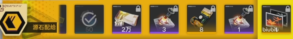 这个通行证分为三档三个档位的奖励是不同的,其中第一档是基础档位也就是不用氪金能白嫖的档位,这一档位中的奖励没有爱多只有一些兑换惊喜箱、武器检查装置、各种磨具和记录协议还有嵌晶玉。