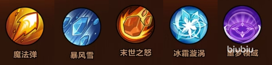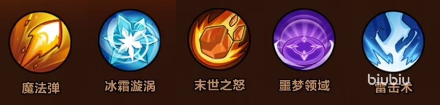 技能选择:魔法弹+暴风雪+末世之怒+冰霜漩涡+噩梦领域