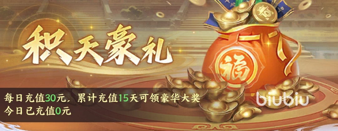 每日充值金额达到30元后,就能领取当天的豪礼礼包,累计持续充值15天后,可将所有豪礼礼包领完,且最后一天能拿到很稀有的【红3星斗魂】,可用于给斗者升阶。