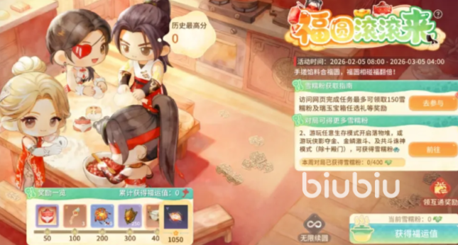 该活动中需要达到活跃度要求,之后可以拿到对应的材料拿到材料后可以进行合成拿到元宵,院校可以用于兑换奖励,奖励以宝箱为主在拿到了奖励后接下来是一个开附带活动,该活动中玩家只需要参与侠影夺宝活动那就有概率拿到福袋。