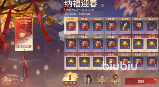 只需要去做其中任意活动就能拿到红包,红包中可以开出神佑宝灯等奖励,然后是一个签到活动该活动中一共可以签到获取62个宝箱,签到周期很长需要玩家每天上线慢慢的积累,在签到获取宝箱的过程中会有一个合成活动。