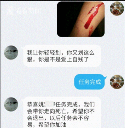 生命非常宝贵,任何让你伤害自己的事,都要坚决拒绝,如果你感到迷茫,请记住,有很多人愿意帮助你,你并不孤单,远离危险的信息,拥抱真实的生活,这才是对自己最好的保护。