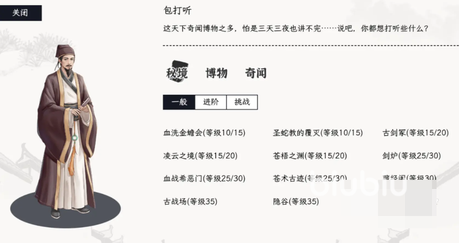 想要顺利进入到秘境大家首先需要得到一个信物,而信物获取有两种方法,一个是打败游戏选择的精英级别的BOSS,再有就是来到侠义时间当中,选择一个事件触发然后拾取。将信物给包打听,在该游戏中秘境分为十一个等级。
