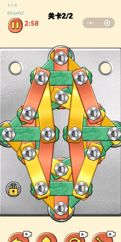 游戏的核心就是拧螺丝,你需要用手指在屏幕上滑动,模拟拧螺丝的动作,把螺丝拧进指定的位置,听起来很简单,对吧,但玩起来还挺有意思的,因为你需要控制好力度和方向,螺丝才能准确到位,有时候位置很刁钻,还挺考验耐心的。