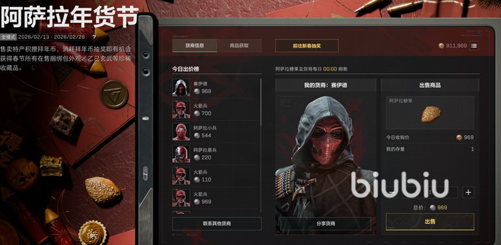 接着下一个活动是阿萨拉年货节。这个也是一个任务式的活动,我们可以通过完成每日的游戏任务来获取到。咱们在完成每日任务的时候是可以获取到阿萨拉糖果。这个糖果是可以进行出售的。咱们在出售之后可以获取到拜年币。这个拜年币可以进行抽奖,我们在消耗拜年币进行抽奖的时候是可以获取到传说或者史诗级别的外观,乙巳玄武等红色的收藏品。整体来说这个活动福利很好,但是很依赖运气。