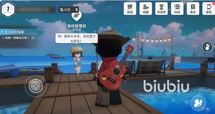 钓鱼在港口渔场进行,场景各处的钓鱼点都能进行钓鱼,可通过科技升级鱼竿,或者更换鱼饵来吸引更多的鱼,需要在适当时机收竿,时机错误,或者时间流逝,都会扣除体力;获取的有些鱼类可以进行鱼肉加工,提供给餐馆生产更多餐品。