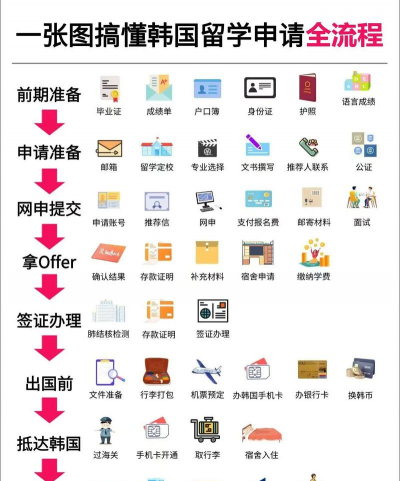 流程其实分几步,第一步是准备材料,包括学历证明,成绩单,语言成绩,还有自我介绍书,学习计划书,第二步是网上报名,去学校官网申请,填写各种信息,第三步是提交材料,邮寄或现场交,第四步是等待面试,有些学校需要,第五步就是等结果了,收到录取通知后,就要办签证了。