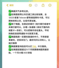 到了韩国之后,生活要注意什么,首先是住宿,可以住学校宿舍,但比较紧张,校外租房也行,但价格贵些,其次是吃饭,学校食堂划算,自己做饭更省,然后是交通,买张交通卡,地铁公交都方便,还要适应文化,韩国人很注重礼仪,见面要鞠躬问好,了解这些,能帮你更快融入。