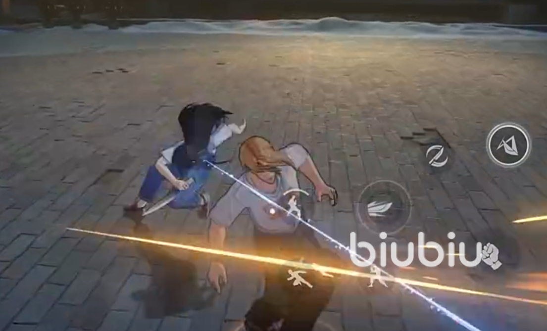 她的“风火轮”会用手中刀斩击2下,和上一招相同,此招也可以通过再次点击攻击,来释放腾空追击并丢出旋转的刀刃来劈砍对手,最后再将敌人踩踏到地面,若再完美时机点下会放出剑气攻击。