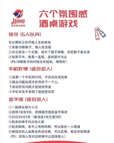 海伦司能玩的游戏,其实挺多的,关键在于,你和朋友们想怎么玩,无论是用店里的,还是自己带的,目的都是为了开心,所以,放松点,享受聚会时光就好。