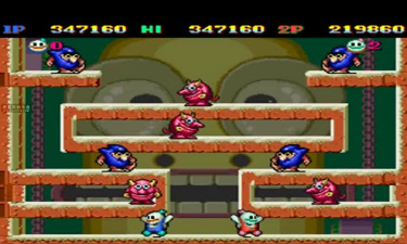再看游戏背景,它来自街机厅,后来移植到红白机,属于平台跳跃类,但又不完全是,因为它更注重策略和配合,可以双人一起玩,乐趣加倍。