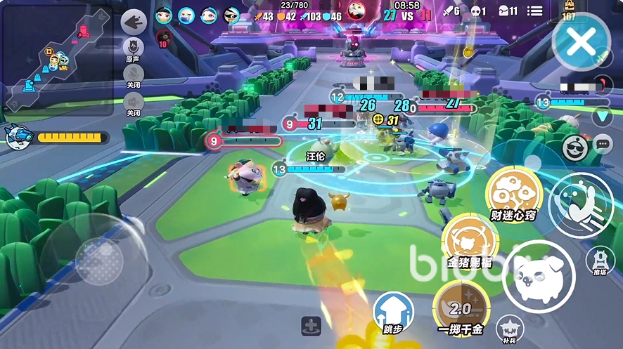2技能“金猪赐福”,小金猪为一名友方添加护盾和移速,并在短暂延迟后,在目标周围造成一次爆炸,对范围内敌人造成伤害和减速。3技能“财迷心窍”,小金猪在目标点召唤一棵摇钱树;