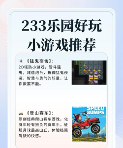 很多人打开233,却不知道玩什么,其实,找游戏并不难,关键是要看你的喜好,今天,我们就来聊聊,在233上,有哪些游戏值得一试。