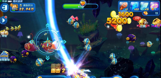捕鱼游戏,有一定运气成分,但技巧也很重要,比如,不要只盯着大鱼打,适当清理小鱼,保证持续收入,观察鱼的游动路线,预判位置再开炮,可以节省炮弹,参与游戏活动,有时能领免费炮弹。