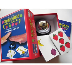 再看基本规则玩法其实,非常简单易懂,玩家轮流,翻开自己的牌,当桌面上,出现某种水果,正好凑齐五个时,所有玩家,就要立刻,去抢按铃,谁第一个按到,桌面上所有,翻开的牌,就都归他了,所以,眼疾手快,是关键。