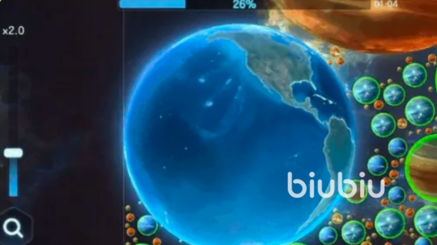 喷射速度可以自定义,随后都可以调节,当大家靠近体积小于自己的星球时,强大的引力会将其拉扯帮助轻松吞噬,自身也将得到成长,但要注意比自己要大的星球,判断好体积,保持安全距离非常关键。