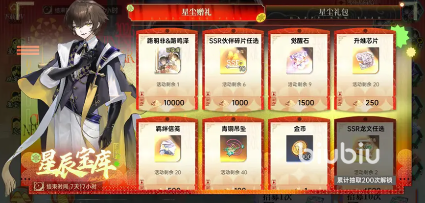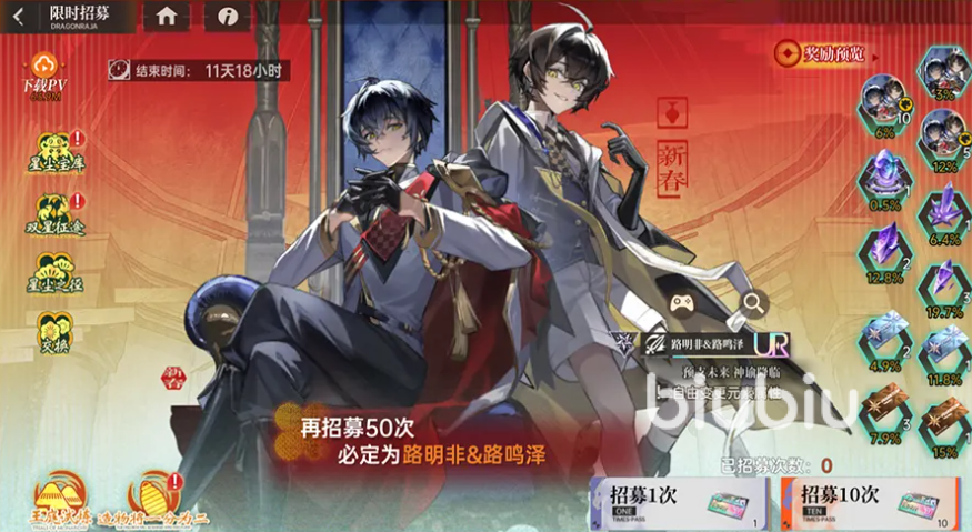 首先在活动期间可以使用ur招募卷,来获得UR伙伴路明非和路鸣泽,最多招募50次必得,另外还有“王庭试炼”,大家可以去挑战强大的首领BOSS,每达成一个阶段挑战,就可以解锁对应奖励,拿到活动代币“星之砂”,成功上榜单的专员还能收获“青铜吊坠”等珍稀道具。