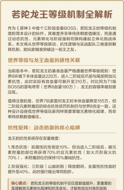 战斗机制是关键若陀龙王,打法有特点,它有两种形态,第一阶段,是岩元素形态,第二阶段,会转换属性,可能是冰,或者火,或者雷,你需要,带对角色,比如,带护盾角色,很重要,因为它攻击,非常猛烈,伤害很高。