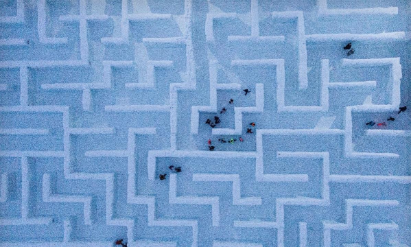 迷宫里有很多冰雪机关,比如滑动的冰面,还有会喷冷气的陷阱,遇到冰面时,要慢点走,点一下走一步,不然会滑过头,掉进坑里,喷冷气的陷阱,一般有规律,观察它喷发的间隔,趁它停顿时快速通过,有些机关需要踩亮地板,记住踩亮的顺序,错了会重置。