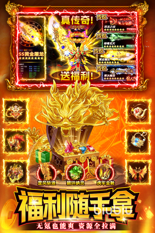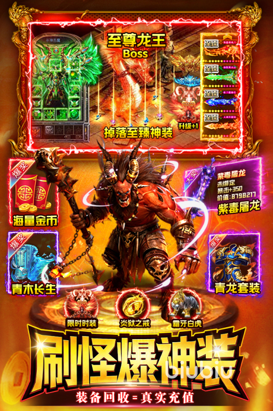 游戏将爆率拉满,不论怪物等级,哪怕是小怪也有机会掉落终极装备,除了装备外灵宝、圣兽材料也全靠打,只要选择好怪物密集的区域,就能稳定产出,哪怕是零氪玩家也能凭借高效刷怪快速提升战力,逆袭成王。