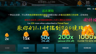 然后,是完成成就任务,游戏里成就很多,完成就给奖励,其中就包括琥珀,比如驯服恐龙,建造家园,探索地图,这些成就奖励,累积起来也不少,算是正当途径。