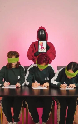 给蒙眼的人一支笔,一张纸,然后告诉他画什么,比如画一只猫,或者画一个房子,因为看不见,画出来的东西往往歪歪扭扭,特别搞笑,等画完了,大家一看,总能笑成一团,这个游戏创意十足,也很考验抽象表达能力。