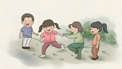 跳皮筋则是女孩子们的专属,两个人撑着皮筋,一个人在中间跳,还要念着歌谣,皮筋的高度会越来越高,跳的难度也越来越大,这个游戏既优美又有挑战性。