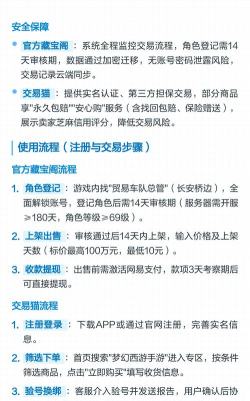 然后,我们说说交易流程,第一步是上架账号,你需要填写详细信息,包括角色截图,装备属性图,宠物技能图,信息越真实越详细,买家越放心,成交速度也越快,第二步是等待买家咨询,和买家沟通时,态度要好,如实回答所有问题,不要隐瞒任何瑕疵,比如账号有没有绑定手机,有没有历史纠纷,诚信是交易的基础。