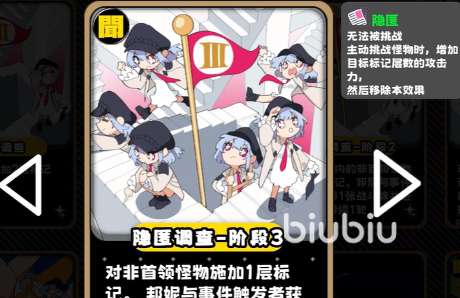 其中隐匿的作用就是提高自身3的攻击力,这个加成幅度是很大的,基本上每次攻击都能造成巨额的伤害,尤其是跟低血量单挑的话,几乎是百分百能赢下胜利,从而获得额外的星币,还有一个效果就是可以让自己进入隐身的状态,在这个隐身的状态,所有怪物都无法攻击自身。