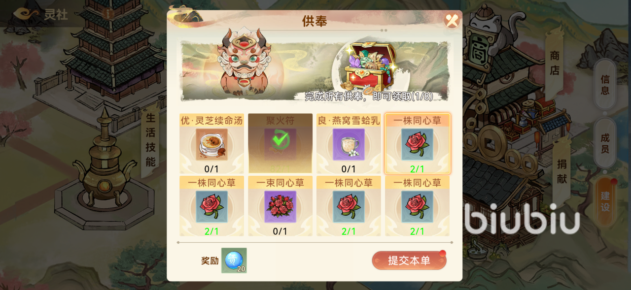 2、通过灵社来获得,灵社玩法相当于【公会】玩法,当玩家达到了25级就能加入灵社了,通过供奉社团道具能获得的道具,一天最多能4-10株同心草。