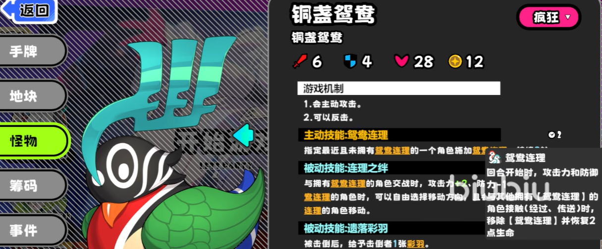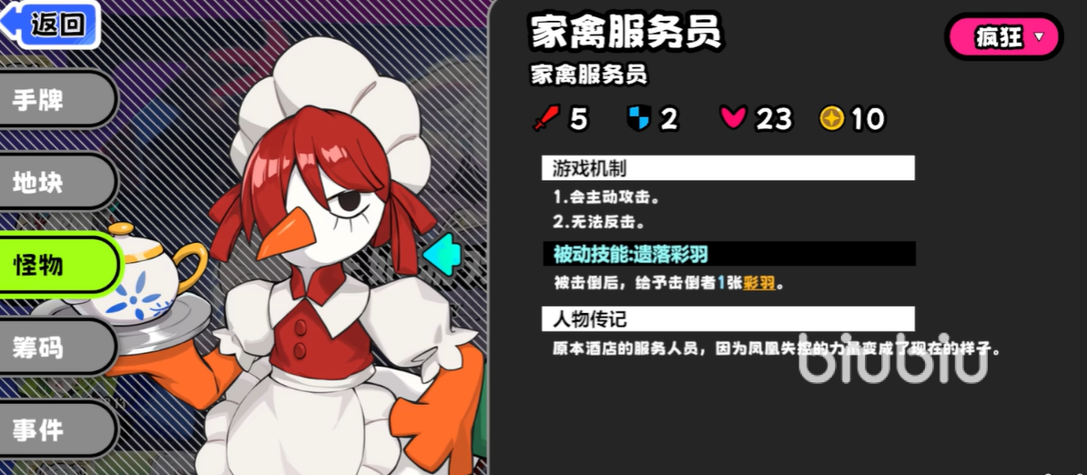 这里就讲解一下两个开局的大致玩法,其中服务员挑战难度相对低一些,因为服务员这个怪物的各项属性都比较低,基本是初期的角色也能顺利击杀,还可以获得一张恢复的卡牌,从而不断地前进,在此期间虽然会遇到孔雀,但这些都属于孔雀的残影,本体的血量以及攻击力都不高,玩家们只要能携带能治疗的角色或者卡牌的话,可以直接速通到最后的地方。