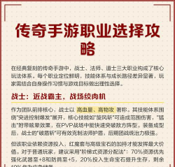 选对职业很重要,战士血厚防高,适合近战冲锋,法师输出暴力,但身板比较脆,道士能召唤宝宝,玩法比较多样,看你喜欢哪种,喜欢硬刚就选战士,喜欢远程就玩法爷,想轻松一点,道士是不错的选择。