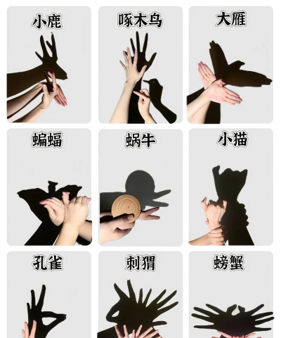 先看光影剧场这是最经典的游戏,你需要一面白墙,然后,用手电筒照过去,接着,用双手做出造型,比如,小狗,小鸟,或者兔子,影子会投在墙上,非常生动,孩子会很喜欢,你可以讲故事,让影子动起来,这样,一个简单剧场,就诞生了。