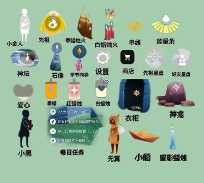 游戏里,你需要收集两种东西,一是“光之翼”,它散落在各个地图的角落,找到它,你的斗篷上就会多一颗星星,这能让你飞得更久,飞得更远,二是“蜡烛”,点燃地图里的蜡烛,或者烧掉黑暗植物,都能获得烛光,烛光可以合成蜡烛,蜡烛非常重要,可以用来和先祖兑换表情、动作,或者和朋友解锁更多互动。