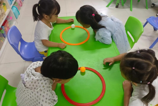 最简单的,就是拍球比赛,和孩子面对面站好,你拍一下,他拍一下,看谁先掉球,或者,设定一个数字,比如连续拍20下,拍视频时,可以计数,孩子会特别专注,为了完成任务,努力控制小球。