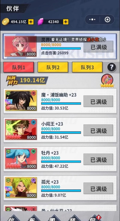 战斗是回合制卡牌,操作起来很简单,上手很快,你可以收集角色,然后搭配阵容,每个角色技能不同,需要动点脑筋,比如,浦饭幽助的灵丸,藏马的蔷薇鞭,都能在战斗中使用,但是,后期有点重复,刷材料会有点累。