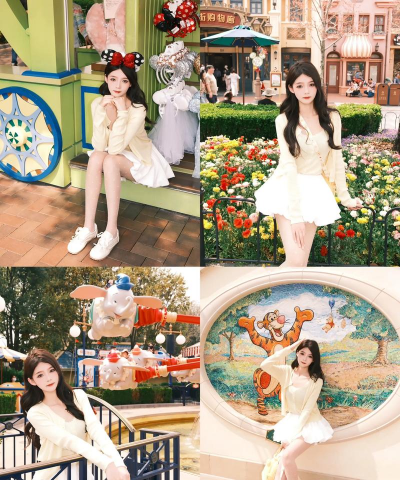穿搭好看,拍照才美,建议选择,背景干净的地方,比如,城堡前面,旋转木马旁,拍照姿势,可以活泼点,比如,跳跃,大笑,这样,照片更生动,另外,利用道具,比如,发箍,泡泡机,也能加分。
