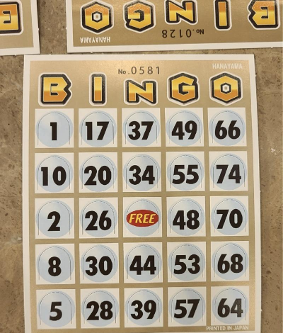 你得准备一张卡片,上面有数字格子,主持人会随机喊出数字,如果你的卡片上有,就把它划掉,目标是连成一条线,横着、竖着、斜着都可以,谁先完成谁就喊“Bingo”,游戏就赢了。