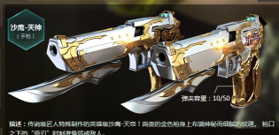 沙鹰天神,是一把副武器,威力很大,近距离一枪,就能带走敌人,不过,它的射速偏慢,换弹也不算快,所以,你不能把它当主武器用,它的定位,其实是补枪和应急,比如,主武器子弹打光了,立刻切出它,往往能反杀。