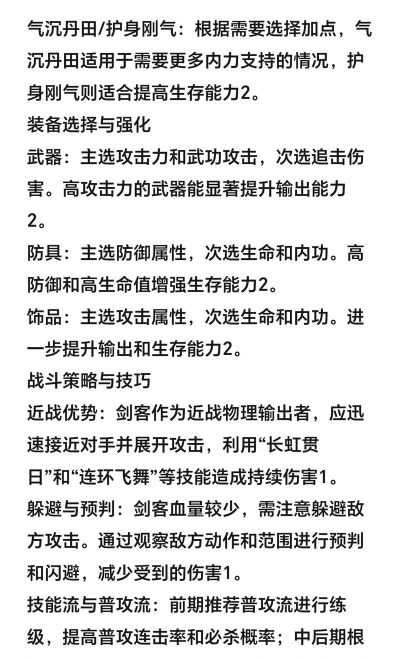 剑客的技能很多,所以,加点很关键,初期的时候,建议主点攻击技能,比如,那个基础连招,然后,再点一个位移技能,这样刷怪快,而且,跑图也方便,中期的话,就要考虑了,是走爆发路线,还是走持续输出,如果喜欢PK,那就多点控制技能,如果喜欢刷副本,那就强化范围伤害,加点没有固定答案,要看你的玩法。
