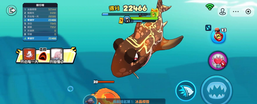 想得高分,要有策略,别总想着,立刻吃大的,先稳一点,多吃小虾米,等体积够了,再去挑战,中等体型的,同时眼睛,要时刻观察,周围环境,预判大鱼,游动路线,提前躲开,这样才能,活得长久。
