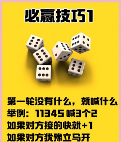 规则是游戏的骨架,必须搞懂,两个人玩,通常用五个骰子,摇完自己看,但不能让别人看,一代表万能,可以当任何点数,比如你喊三个四,你手里的万能一,就可以算作一个四,这很关键,是策略的基础,喊数要循序渐进,只能越喊越大,要么点数增加,比如从三个四,喊到四个四,要么点数变大,比如从三个四,喊到三个五,不能往回喊,这是铁律。