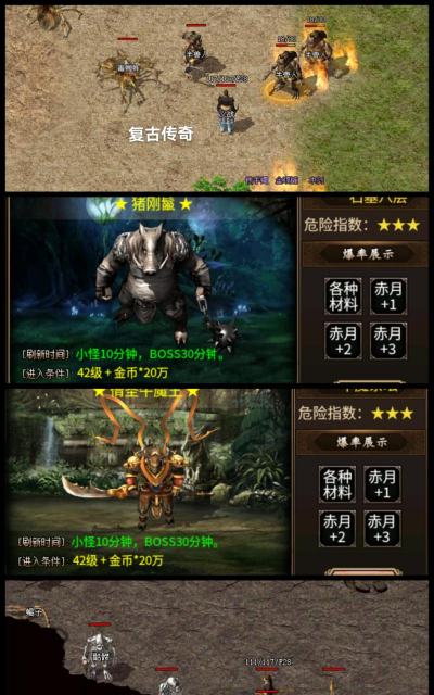市面上的复古手游,版本很多,但核心玩法,其实都差不多,都是打怪升级,爆装备,然后PK,不过,有些版本改动很大,失去了原汁原味,所以,选对版本很重要,建议大家,先看看介绍,或者,进游戏体验一下,看看是不是,你记忆中的样子。