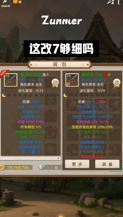 改装备时,属性很关键,不是乱改的,比如武器,优先改伤害,忽视抗性,防具呢,改防御,气血,速度,根据职业来定,输出职业,先改武器,辅助职业,先改防具,这样更划算。