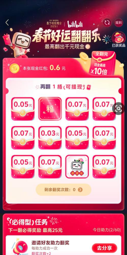今年的新春游戏,主要是收集类玩法,你需要完成各种任务,比如看视频、点赞、分享等等,每完成一个,就能获得道具,集齐指定组合,就能参与抽奖,或者兑换礼品,玩法不难,但需要花点时间。