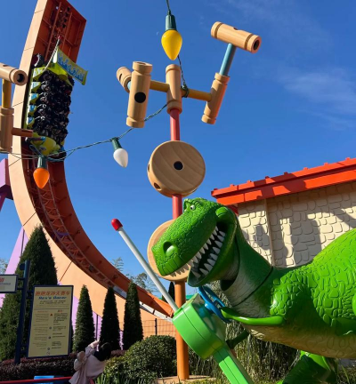 先看游戏规则这个游戏在玩具总动员区,玩法很简单,坐上抱抱龙的车,它会来回荡,像海盗船一样,但更刺激,你的目标是,尽量坐得久,享受这个过程,别太紧张。